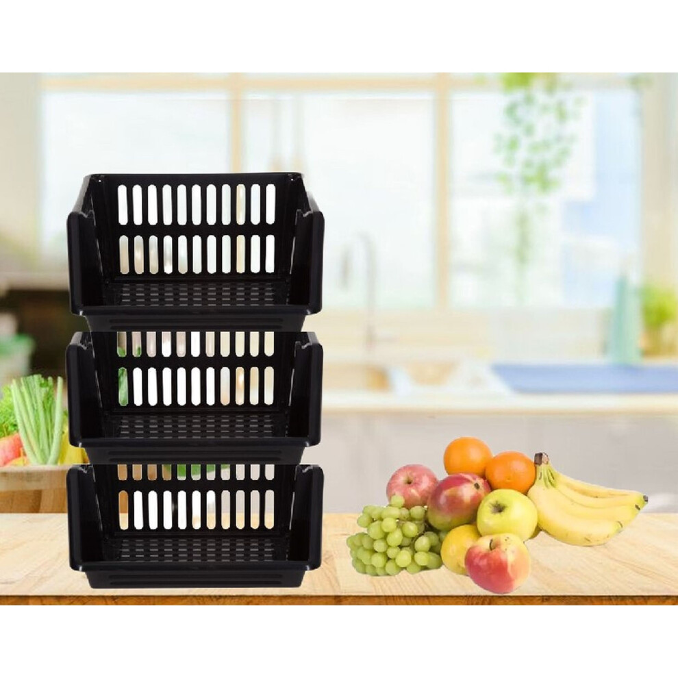 Black Stacking Storage Baskets Veg. Rack 3 Tier Kitchen Office 36cm