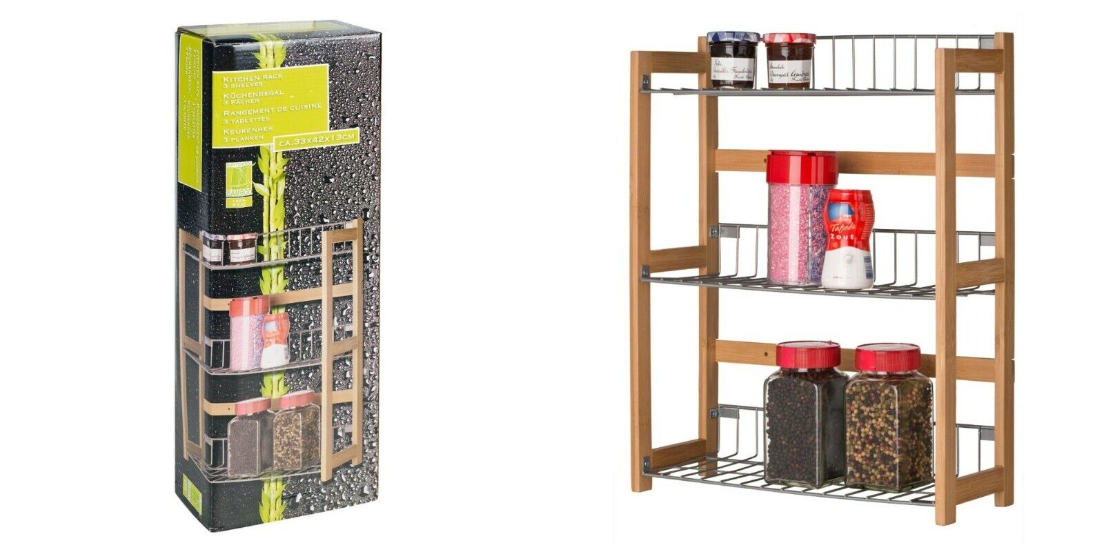 3 Tier Spice Rack Metal & Bamboo Wood Shelf Kitchen Storage Unit Fruits Veg Rack