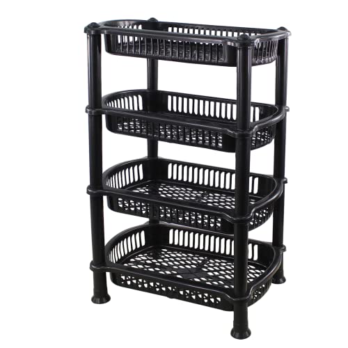 AGP ADVANCED GLOBAL PRODUCTIONS 3 or 4 Tier Stacking Baskets Storage Veg Rack Plastic Stackers, Plastic Kitchen Utility Basket, Use in Bathroom, Home, Office (Black 4 Tier)