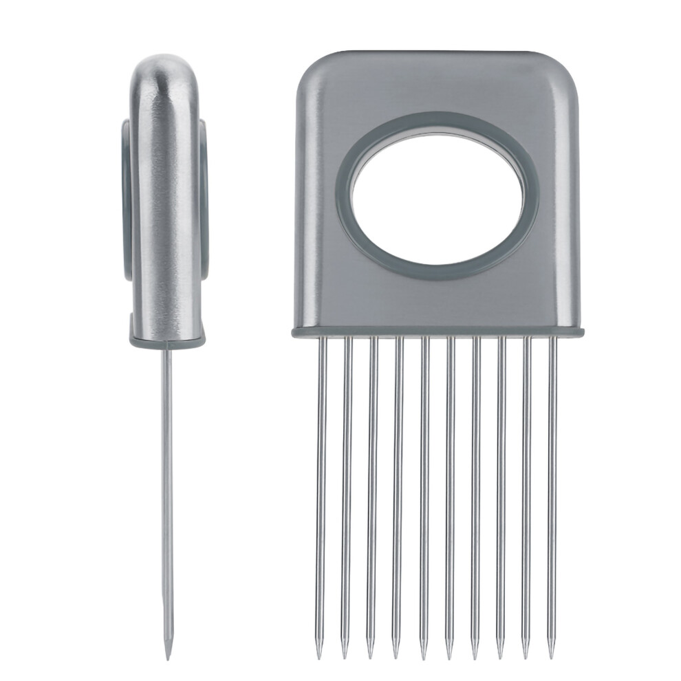 Stainless Steel Onion Holder Fruits Veg Meat Cutter Slicer Peeler Chopper with 10 Prongs