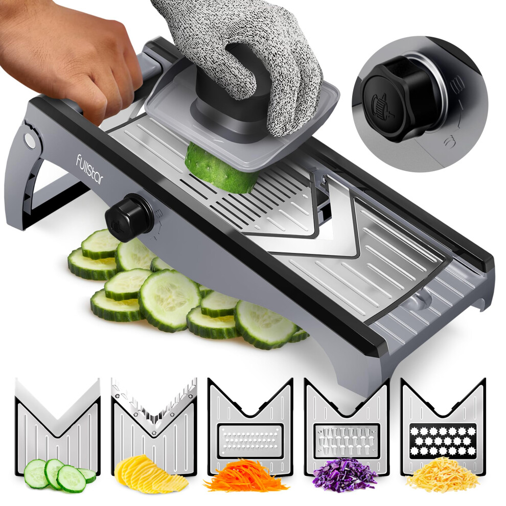 Fullstar Kitchen Mandoline Vegetable Slicer - Mandoline Food Slicer - Veggie Julienne Cutter & Cheese Grater - Potato Veg Slicer - Kitchen Tools & Ga