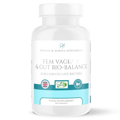 Fem Vaginal & Gut Bio-Balance - 2 Months Supply - Vegan Vaginal probiotics for Women 10 Billion CFU- Candida Yeast Balance, Urinary, Bacterial Vaginosis (BV), UTI, Good Bacteria & Gut Health Support