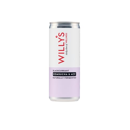 WILLY'S Blackcurrant Kombucha & Apple Cider Vinegar - Probiotics For Detox & Gut Health - Vegan & Gluten Free - 12 x 250ml Cans - Sustainable ACV