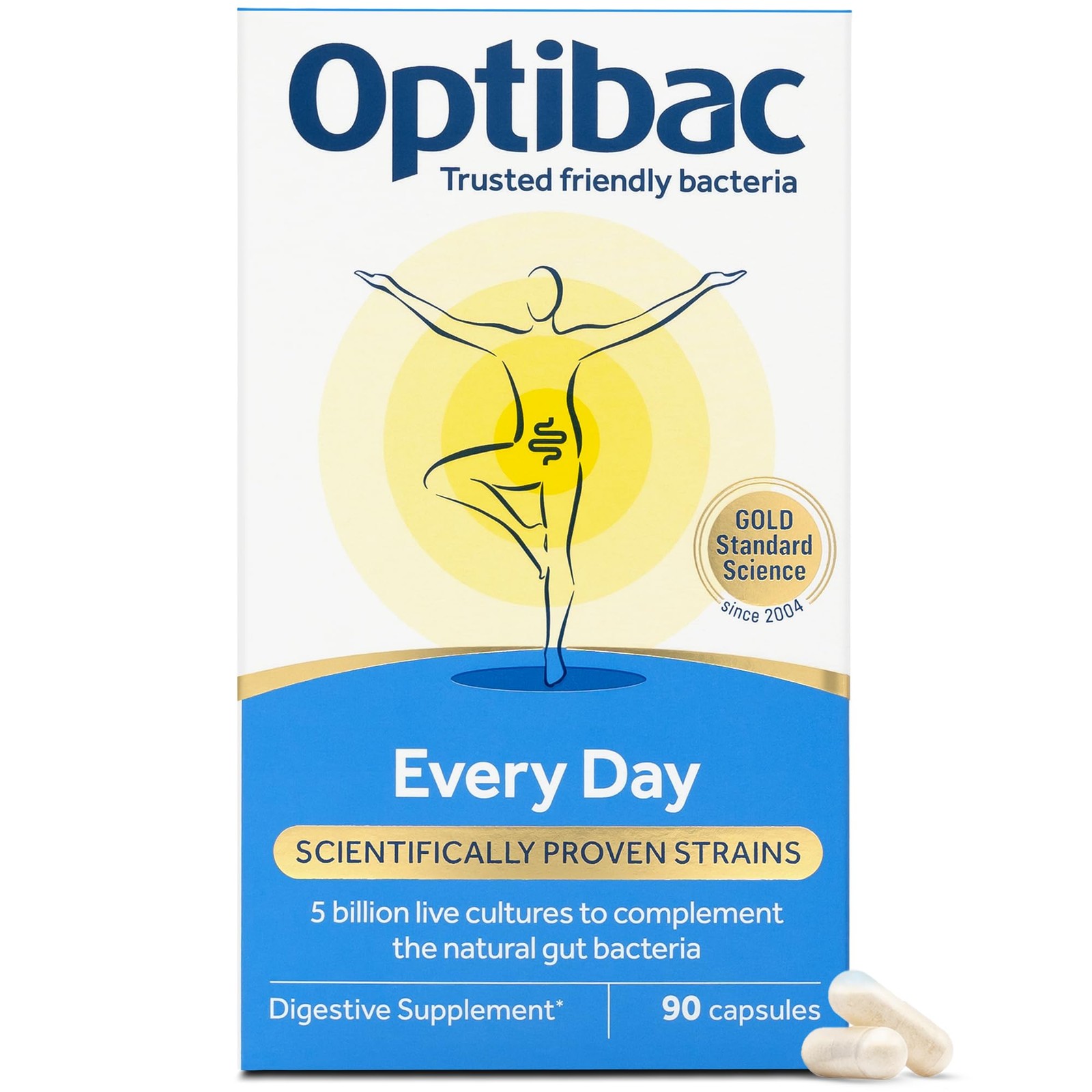 Optibac Probiotics Every Day - Vegan Digestive Probiotic Supplement - Most Trusted & Recommended Brand - Lactobacillus & Bifidobacterium - 90 Capsules