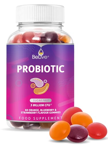 BeLive Probiotic Gummies - Probiotics with 5 Billion CFUs for Digestive Health, Men, Women & Kids - for Immune Support, Sugar Free & Vegan | 60 Ct – Blueberry, Strawberry & Orange (60 Count)