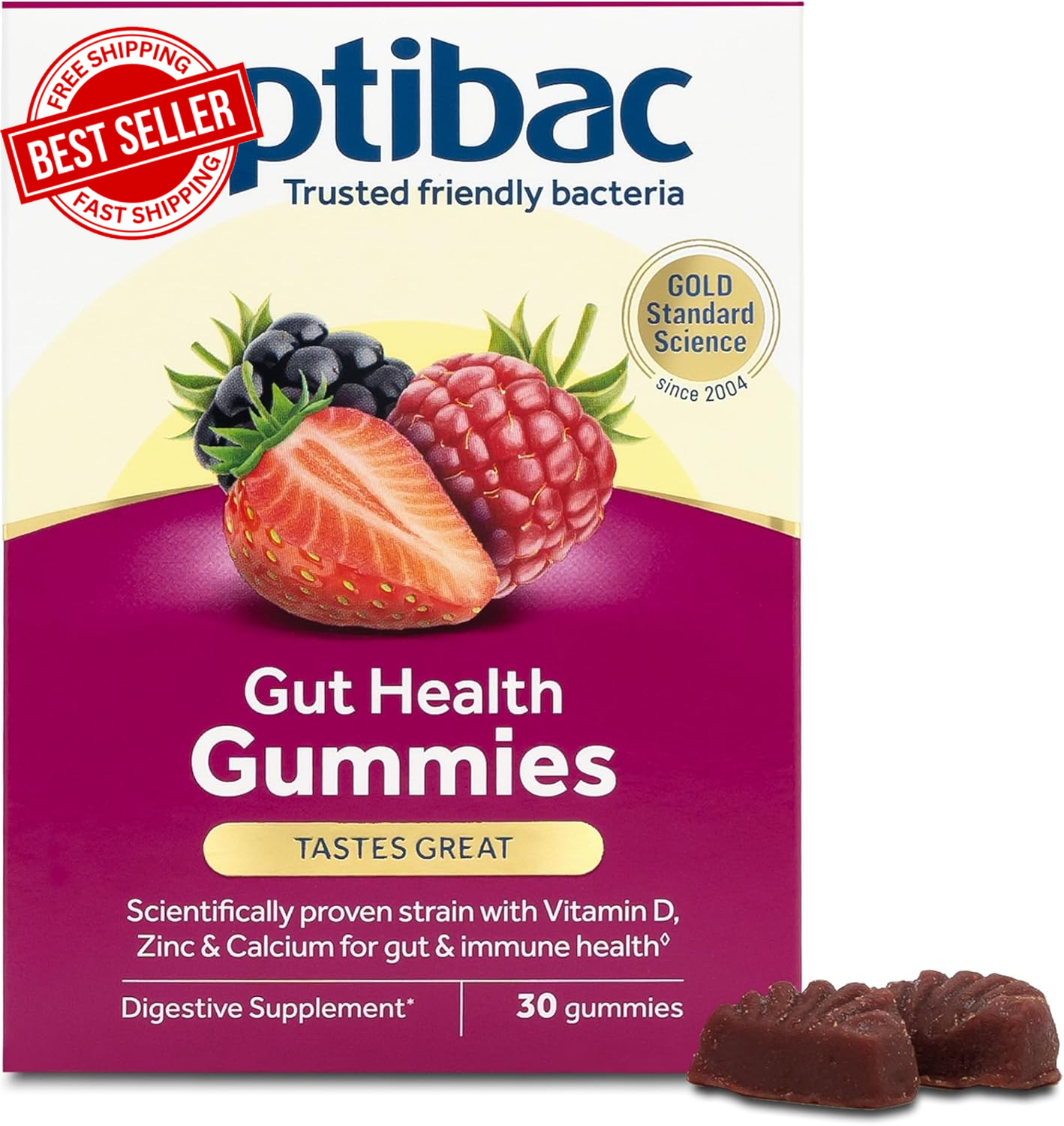 Optibac Probiotics Gut Health Gummies - Vegan Digestive Probiotic Supplement with Vitamin D, Zinc & Calcium for Immune Support & Gut Health - 1 Month Supply - 30 Gummies
