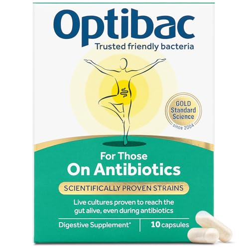 Optibac Probiotics for Those On Antibiotics - Vegan Digestive Probiotic Supplement - Lactobacillus Specifically Researched Alongside Antibiotics - Most Recommended Brand - 10 Capsules