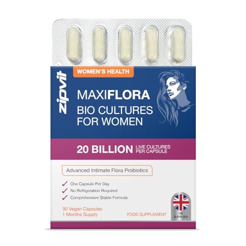 Zipvit MaxiFlora Womens Probiotics 20 Billion CFU, Intimate Probiotics with 3 Bio Cultures, 30 Vegan Capsules, 1 Months Supply, Shelf Stable and Travel Friendly