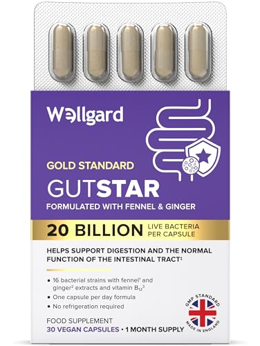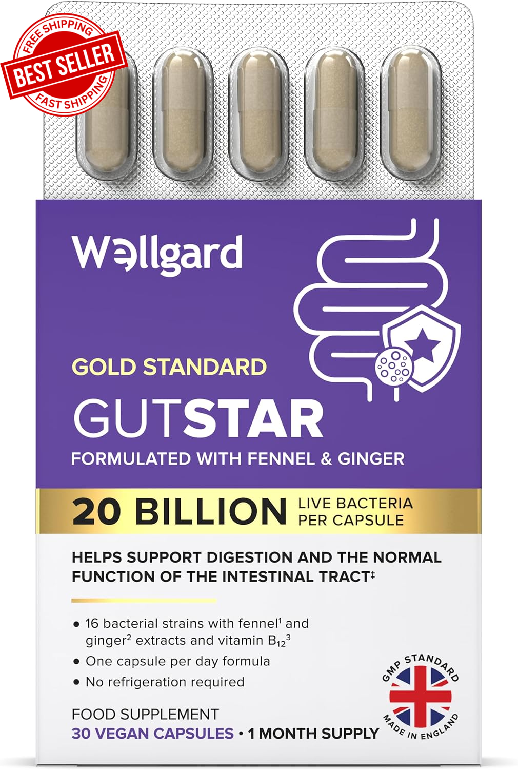 Wellgard Gutstar Probiotics - 16 Strain Probiotics for Gut Health with Fennel and Ginger, Vegan, UK Made