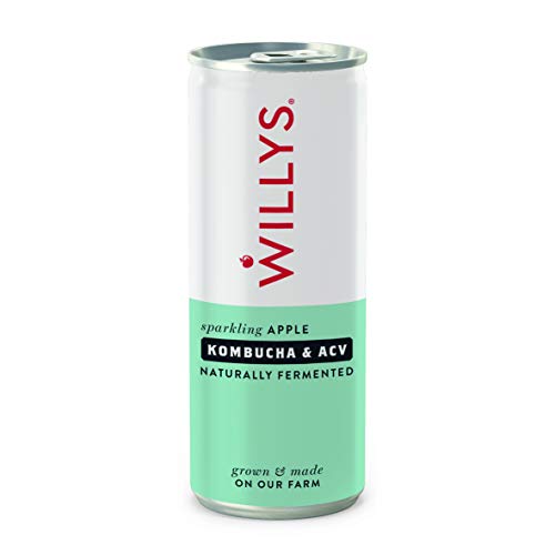 WILLY'S Apple Kombucha & Apple Cider Vinegar - Probiotics For Detox & Gut Health - Vegan & Gluten Free - 12 x 250ml Cans - Sustainable ACV