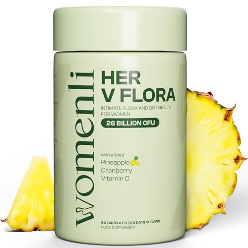 Prebiotics & Probiotics for Women - 26 Billion CFU Flora with Cranberry, Vitamin C & Pineapple | Bio Cultures for Women's Intimate Flora & Gut Health | 60 Vegan Capsules | Her V Flora by Womenli