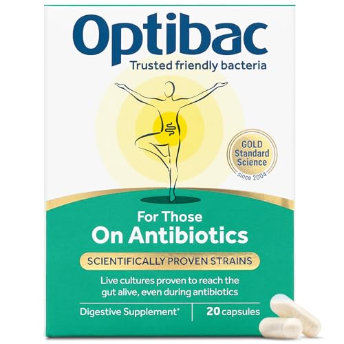 Optibac Probiotics for Those on Antibiotics - Vegan Digestive Probiotic Supplement with Scientifically Proven Strains - Researched Alongside Antibiotics - 20 Capsules