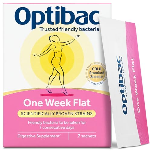 Optibac Probiotics One Week Flat - Vegan Digestive Probiotic Supplement - Gluten Free & Suitable for Bloating - Most Recommended Brand - 1 Week Supply, 7 Sachets