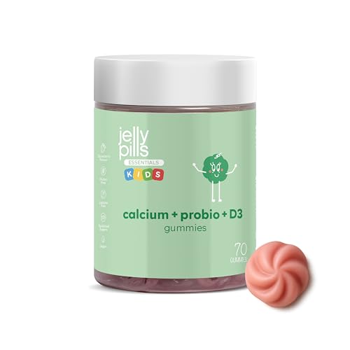 Jelly Pills Calcium for Kids + Probiotics & Vitamins D3 and K2-70 Vegan Gummies - No Added Sugars - Strawberry Flavor - Bone & Teeth Support