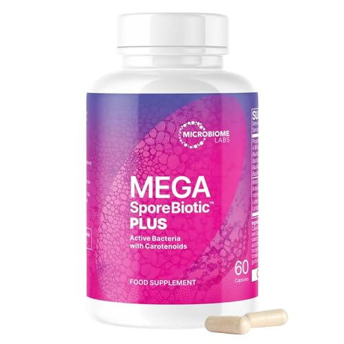 Microbiome Labs MegaSporeBiotic Plus with Antioxidants - Spore Based Probiotic, Active Bacteria Supplement to Boost Akkermansia, 4 Bacillus Strains for Gut Health - Vegan Probiotics (60 Capsules)