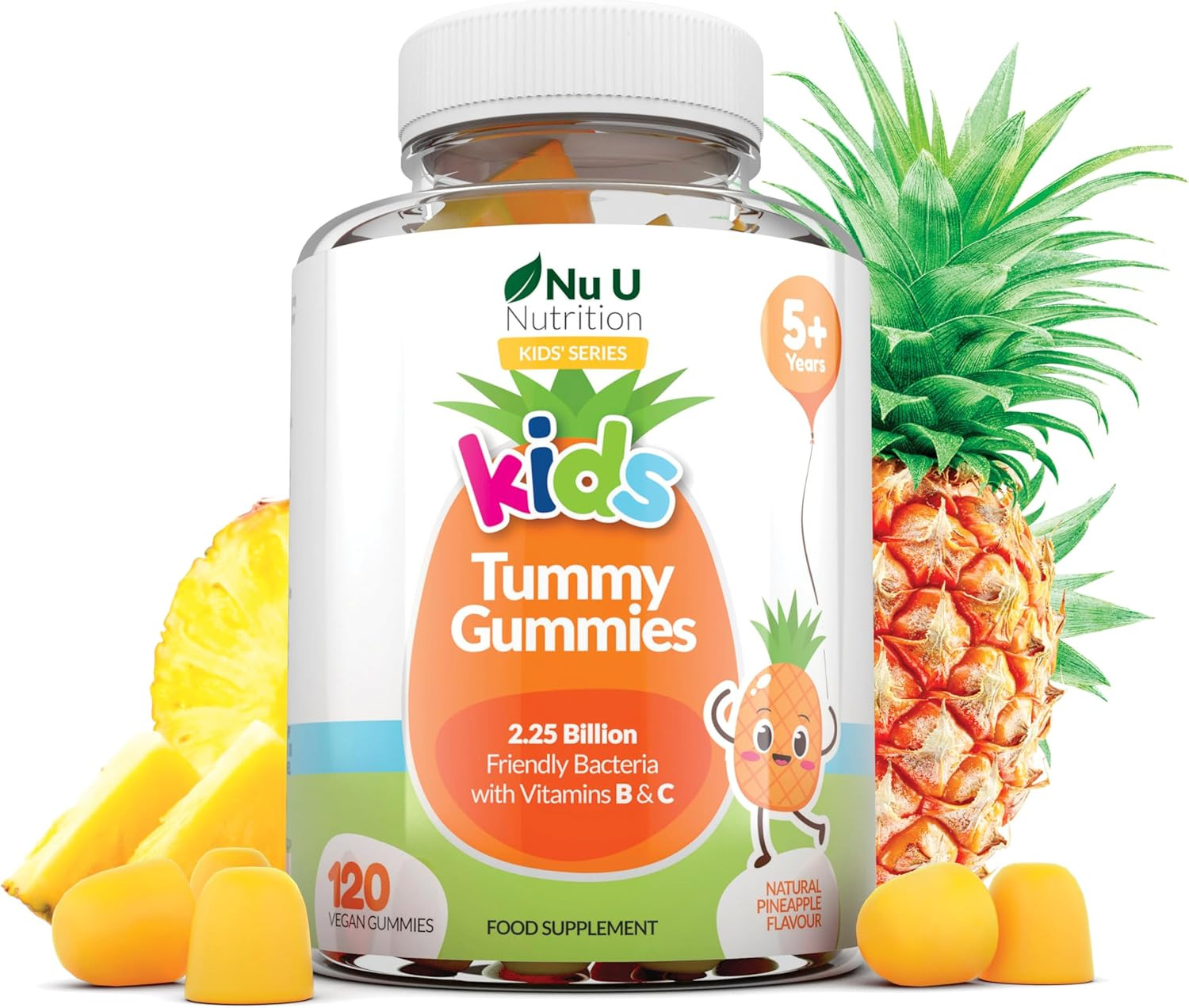 Kids Tummy Gummies - Probiotics for Children 120 Vegan Gummies Natural Pineapple