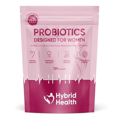 Hybrid Health Probiotics for Women | 120 Vegan Capsules | 50 Billion CFU Womens Probiotics for Gut Health | 11 Probiotic Researched Strains with Prebiotics & Cranberry Extract | Vegan Non-GMO