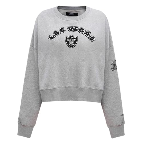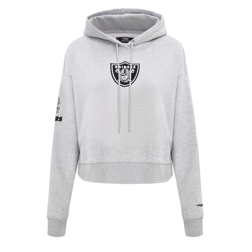 Pro Standard Womens NFL Las Vegas Raiders Classic Chenille Cropped Pullover Hoodie Heather Grey M