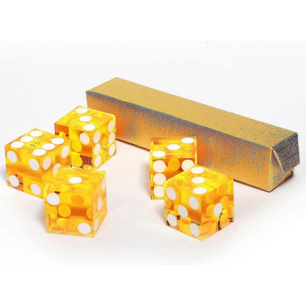 (Yellow, Set of 5 Dice) Premium 19mm Pro Vegas Casino Craps Dice Set of 5, Razor Sharp Edges, Matching Serial Numbers for RPG & Dice Games
