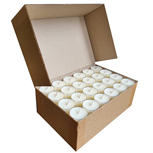 24 Natural Unscented 100% Vegetable SOY WAX Tealight Candles Minimum 4 Hours Burn Time Paraffin-Free Non-Toxic Vegan Tealights in Clear Cup for Oil Burner & Wax Melter