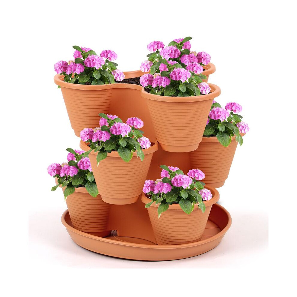 (Terracotta) 3 Tier Stackable Strawberry, Herb, Flower, and Vegetable Planter - Vertical Growing Garden Tower Indoor / Outdoor Planters Tri-Pot