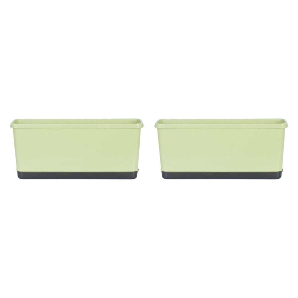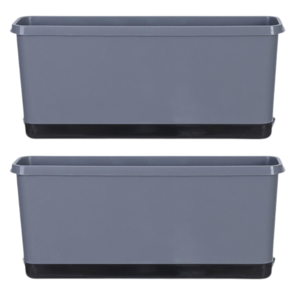 2PCS Rectangular Plastic Plant Window Box Planters with Trays, Indoor Outdoor Vegetable Flower Pots for Balcony Patio Garden