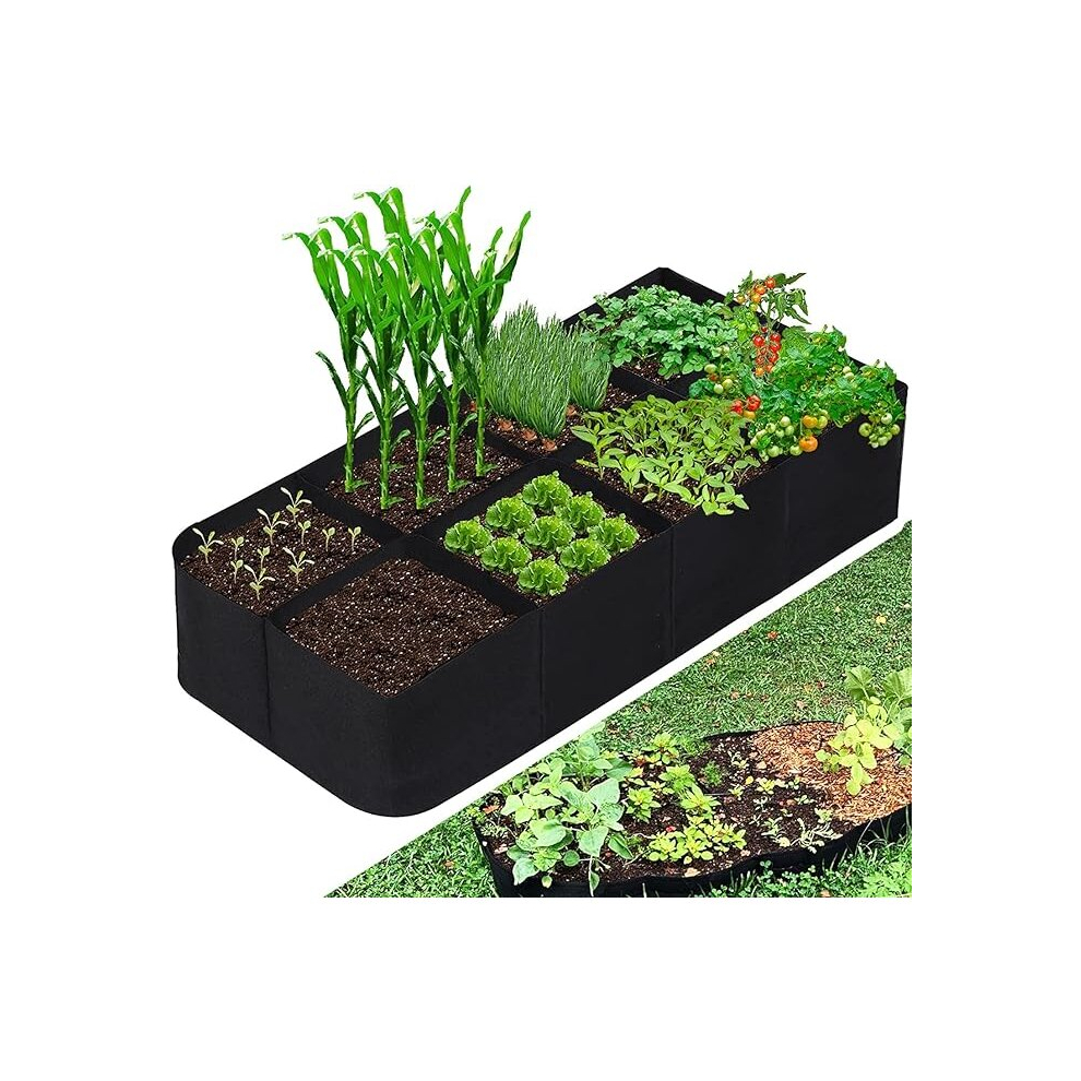 128 Gallon 8 Grids Plant Grow Bags Breathable Planters for Growing Vegetable Flowers Rectangle Planting(180*90*30Cm)