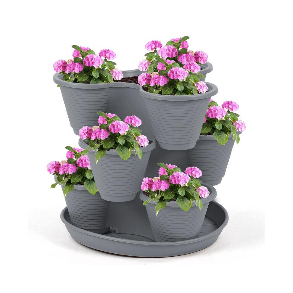 (Charcoal) 3 Tier Stackable Strawberry, Herb, Flower, and Vegetable Planter - Vertical Growing Garden Tower Indoor / Outdoor Planters Tri-Pot