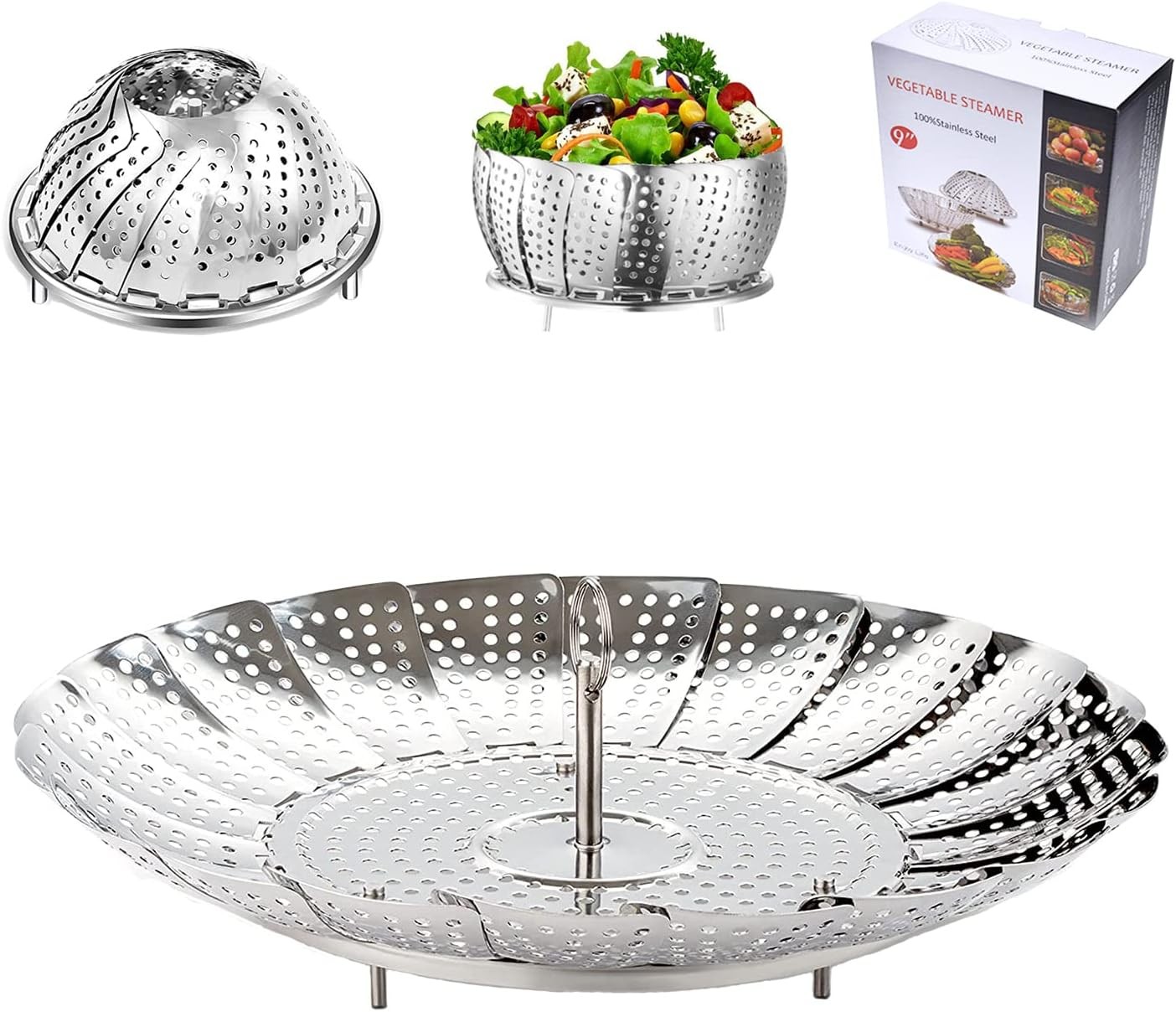 Foldable Vegetable Steamer Premium Stainless Steel Vegetable Steamer Basket, Veggie Steamer Basket Fits Various Size Pot (6" to 10.5")
