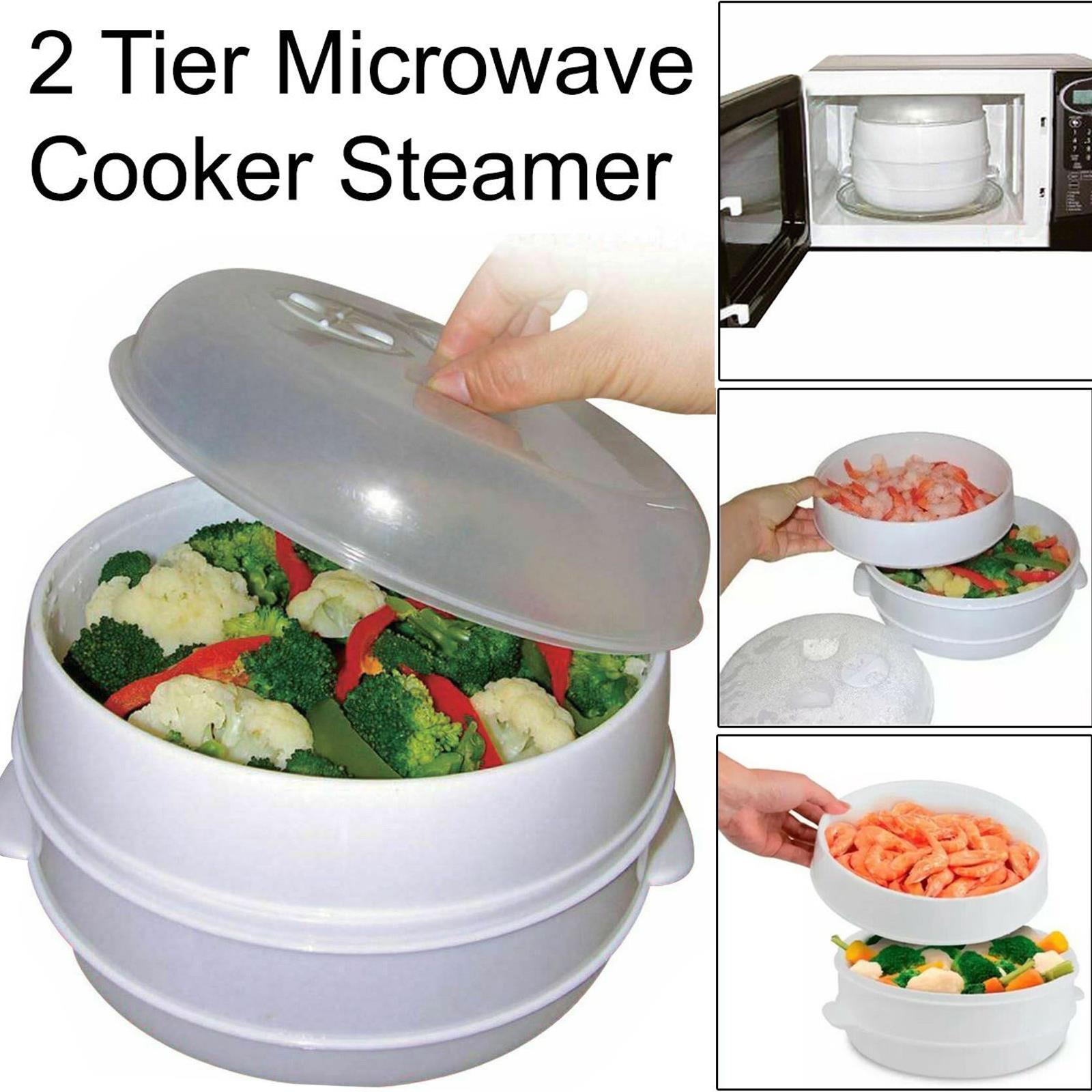 Microwave Steamer Vegetable Fish Pasta Rice Cooker Pot Healthy Cooking 2 Tier