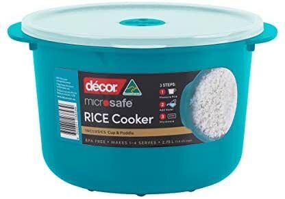 Décor Microsafe Microwave Rice Cooker & Vegetable Steamer 2.75L | Round Container 1.5L | Dishwasher safe, Teal