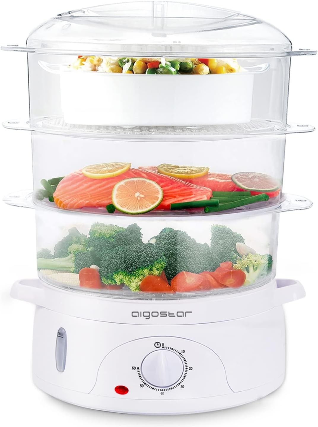Aigostar 3 Tier Food Steamer, Electric Vegetable Steamer with BPA Free, 9 Litre