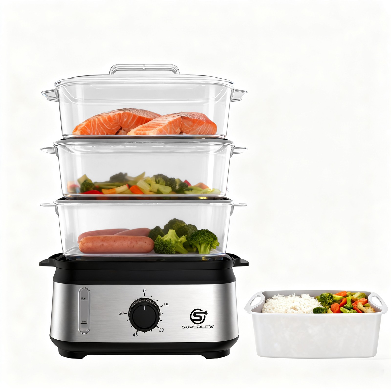 SUPERLEX 3-Tier Food Steamer 9L Electric Vegetable Steamer Healthy Multi-cooker