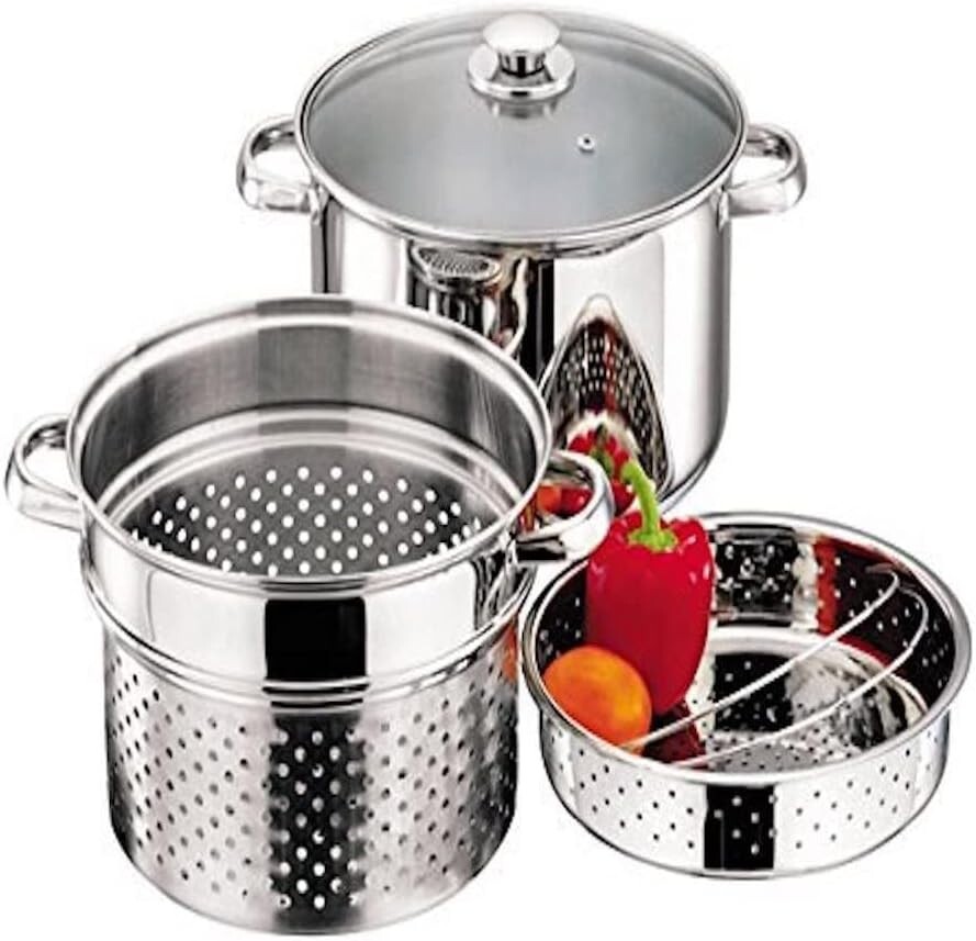 Stainless Steel Pasta Pot with Strainer and Vegetable Steamer Basket - 4 litres
