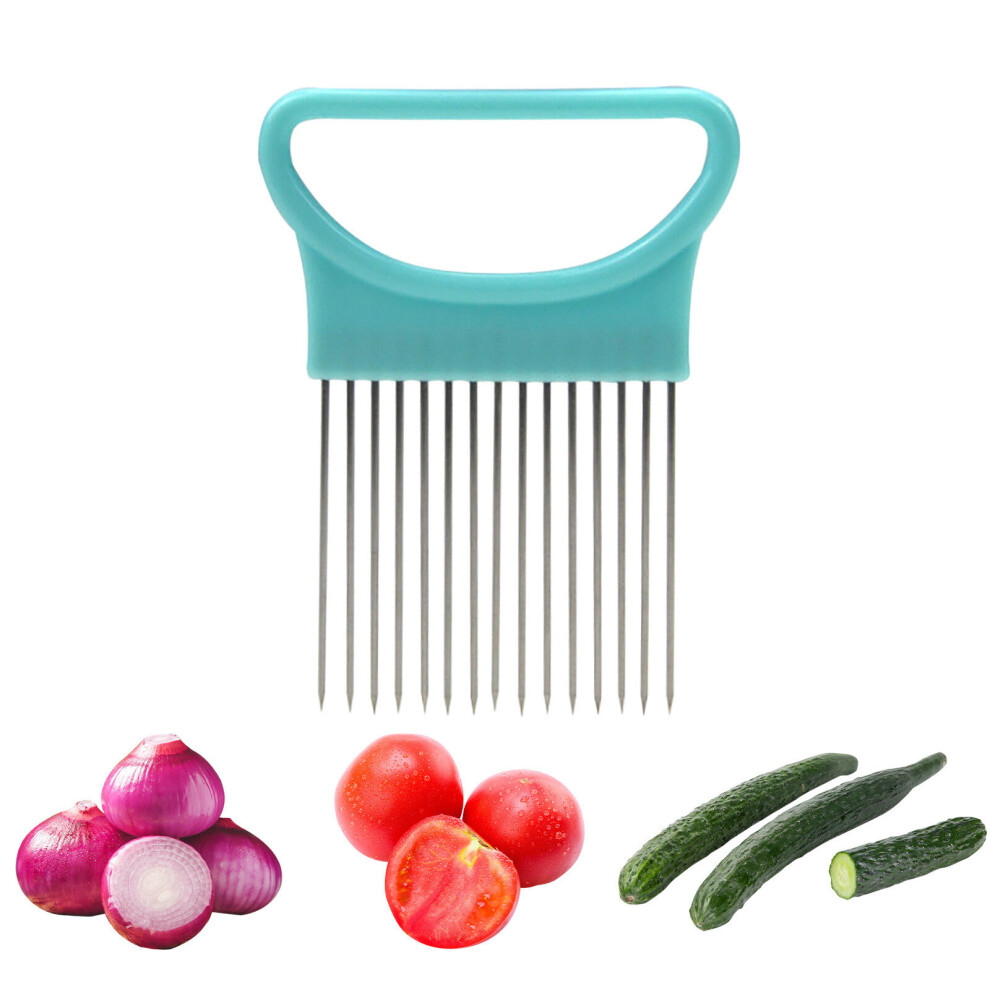 1pc Stainless Steel Onion Needle Onion Fork Vegetables Fruit Slicer Tomato Cutter Cutting Safe Aid Holder Kitchen Accessories