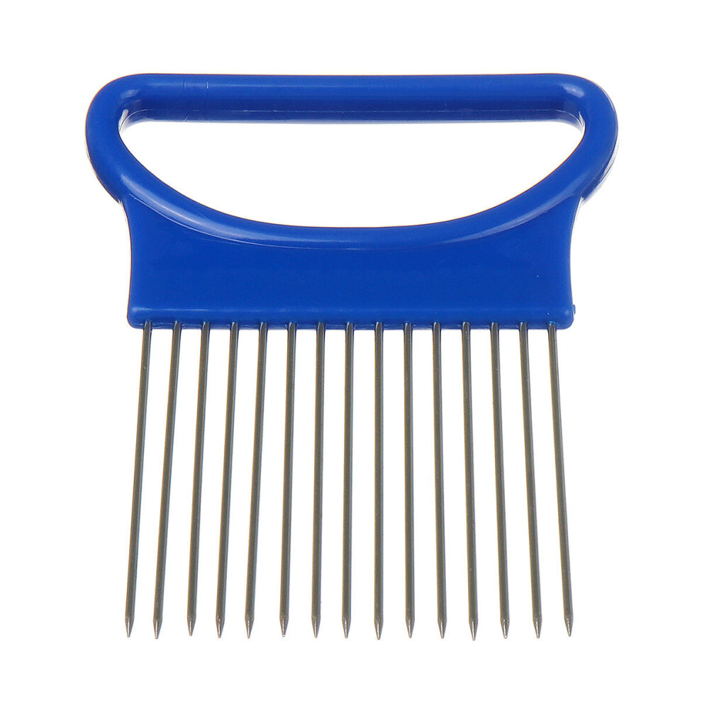 (As show, One size) Stainless Steel Onion Holder Vegetables Slicer Cutting compatible Slicing, Tomato Cutting Aid Holder Guide ,safe compatiblek, Blue