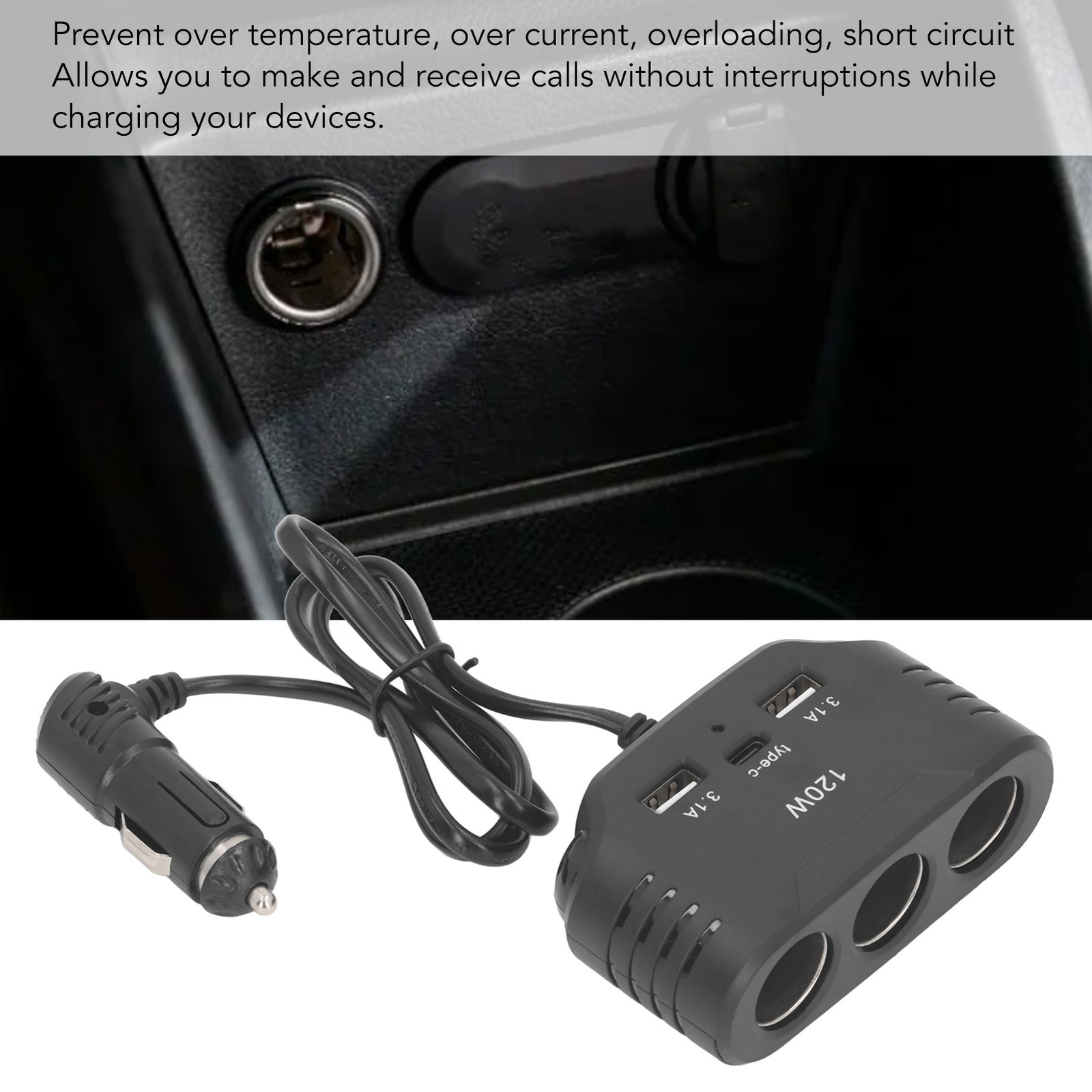 Vehicle Cigarette Lighter Socket Splitter 3 Way with Dual USB Charging Ports