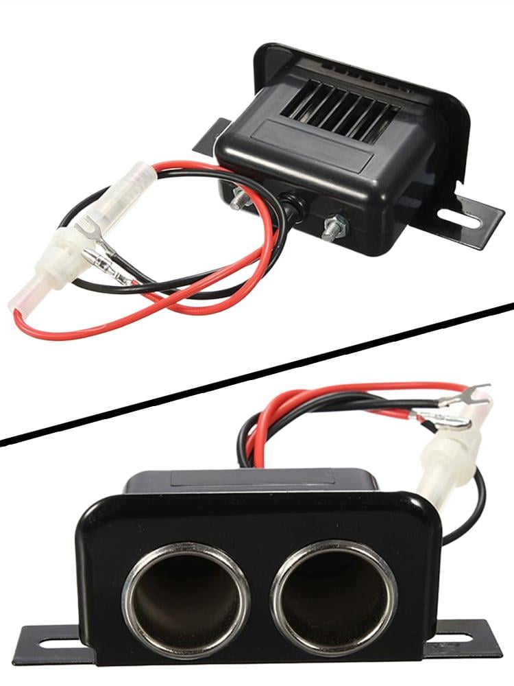 12V Dual Hole Car Cigarette Lighter Socket | Built-in 10A Fuse | Waterproof & Dustproof | Iron Shell for Vehicle Modification