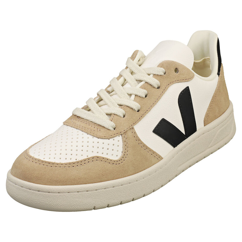 VEJA V-10 Chromefree Mens Casual Trainers in White Black Sahara - 8 UK