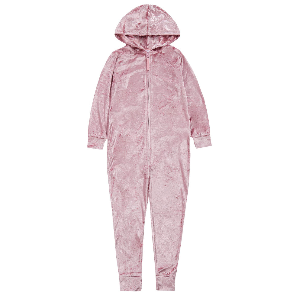 (Pink, 13 Years) Kids Girls Velour Onezee All In One Sleepsuit Jumpsuit Winter Hooded Zip Up Pyjamas Pjs Loungewear Nightwear Sleepwear Size 7-8 9-10