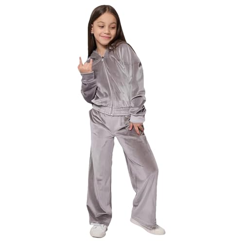 Momuk Girls Velour Hoodie Set Long Sleeve Zip Up Hoodie Tops and Jogger Sweatpants Set Fall Loungewear Sweatsuits 2 Piece (Grey,146cm)