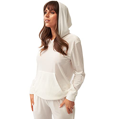 OHS Ladies Velour Velvet Hoodie Womens Tracksuit Hooded Top Loungewear Joggers, Cream - Large
