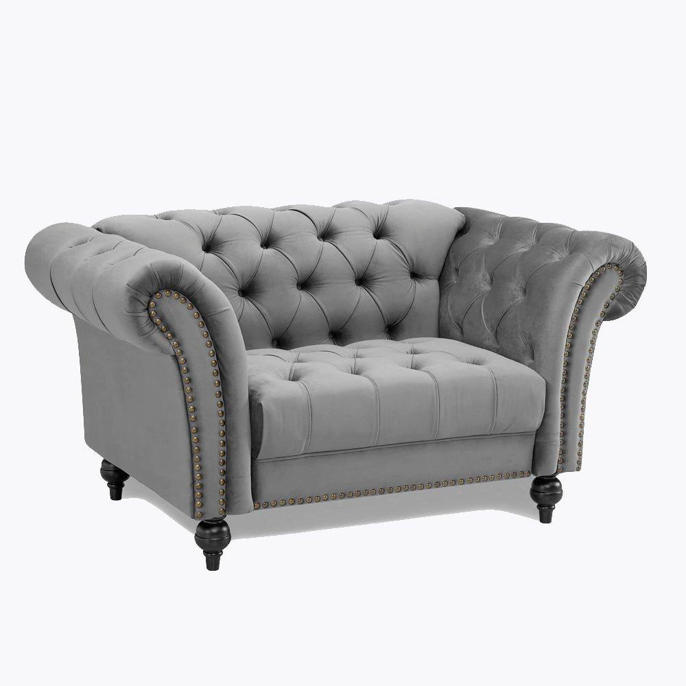 Hutch Velvet Round Arm Armchair - Slate Grey