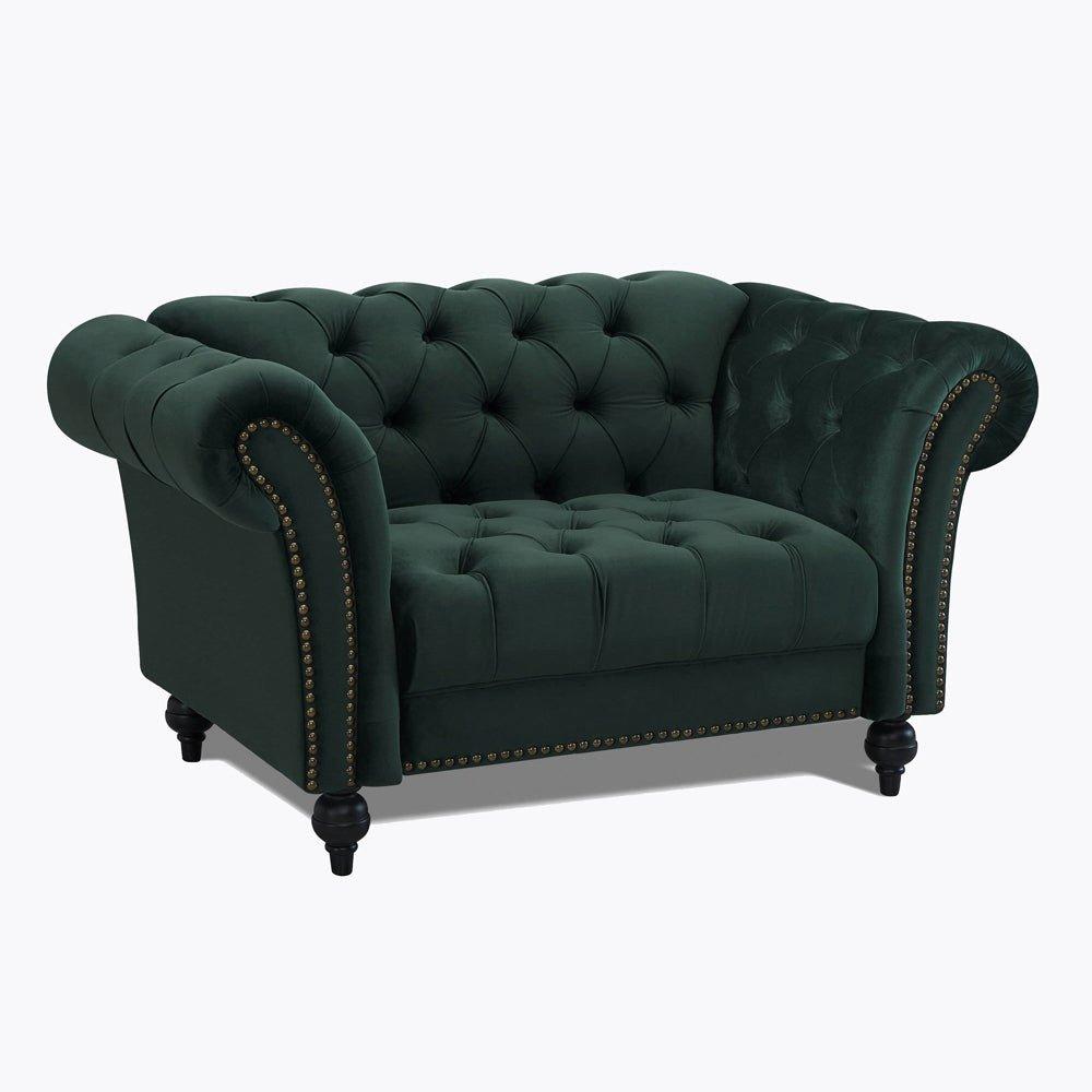 Sage Green Velvet Chesterfield Armchair – Elegant Wingback Arm Chair with Scroll Arms, Tufted Velvet Occasional Chair for Living Room, Conservatory or Bedroom – Stylish Green Chesterfield Armchair