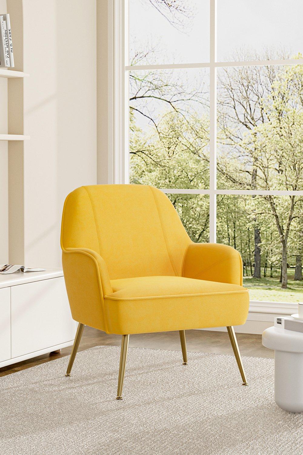 Yellow Warp-Knitted Velvet Upholstered Armchair with Gold Metal Legs