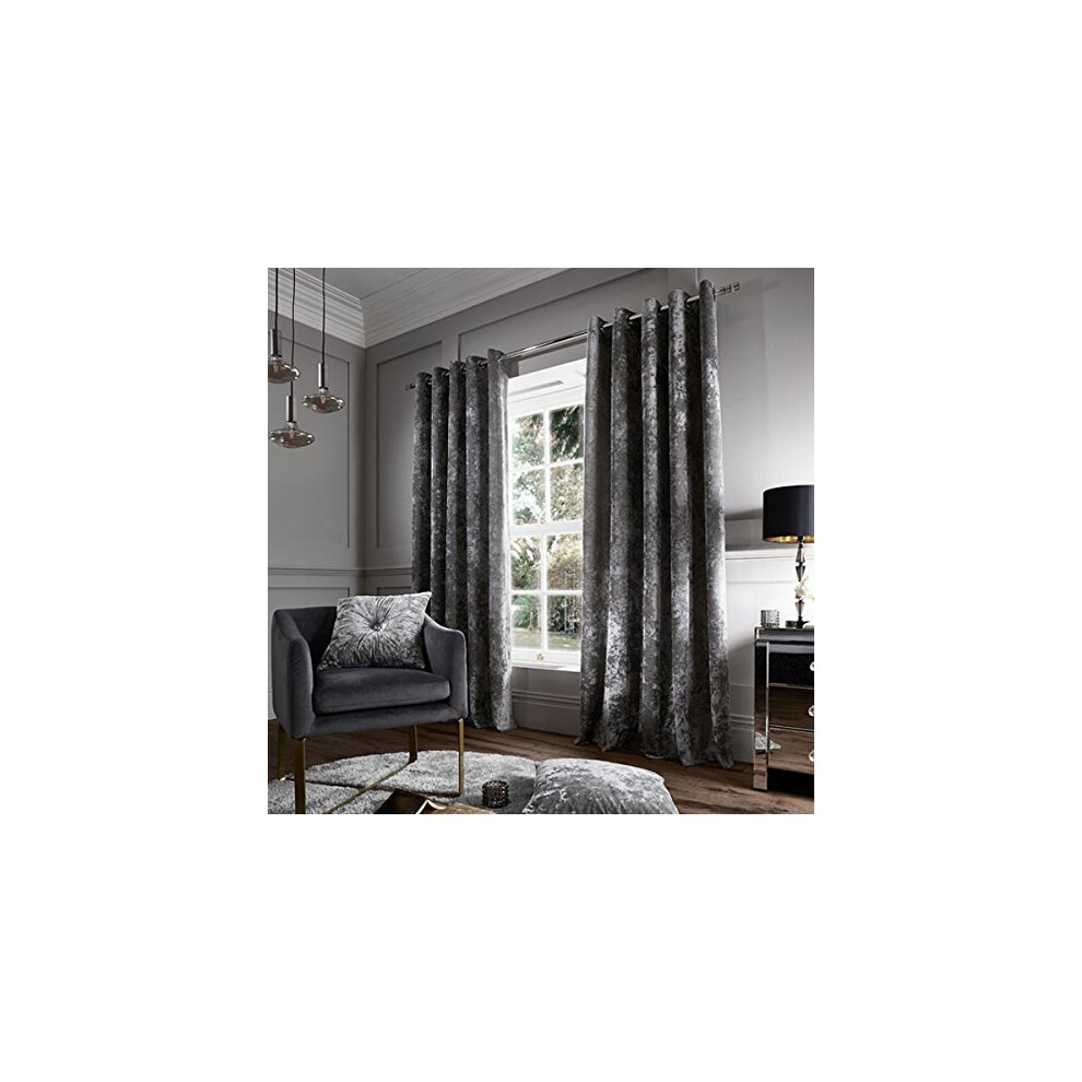 Catherine Lansfield Crushed Velvet 90x90 Inch Lined Eyelet Curtains Two Panels Silver Grey