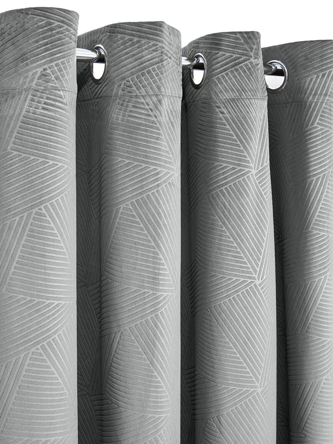 Velvet Thermal Blackout Curtains Geometric Eyelet Ring Top 90x90 Silver Grey New