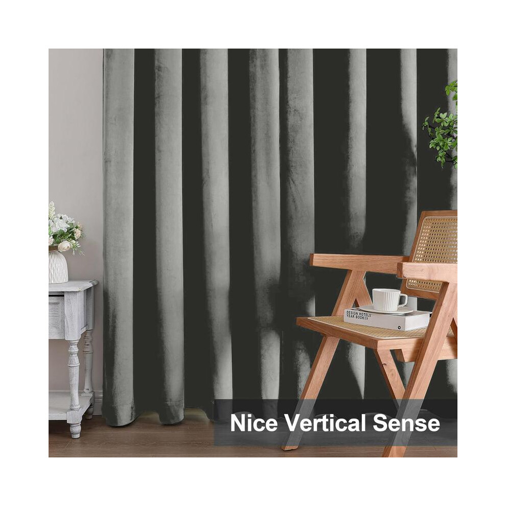 (Grey, 90"x90") Moonlight Bedding Crushed Velvet Blackout Curtains Thermal Insulated Pair OF Ready Made Curtain Panel + 2 Tie