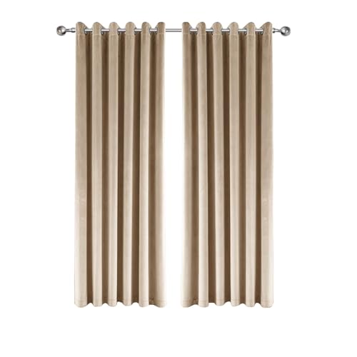 Imperial Rooms Crushed Velvet Curtains 90x90 Drop Eyelet Beige Curtains for Living Room - Fully Lined Ring Top Soft Bedroom Blackout Curtain + 2 Matching Tie Backs (228cm x 228cm)