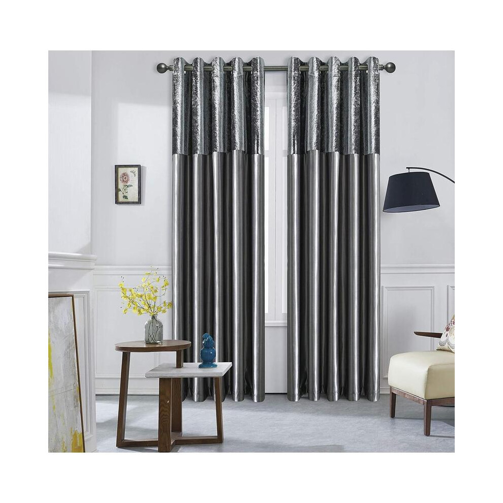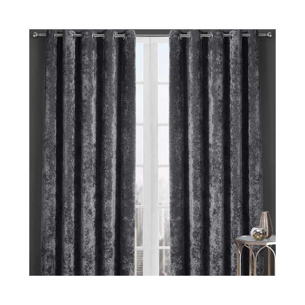 (Charcoal, 90x90) New Crushed Velvet Curtains Pair Ready Made Fully Lined Eyelet Ring Top Pair